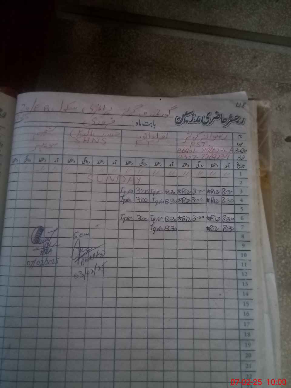 | Name: Sh**** Kh**** Designation: (School Headmaster's/Headmistress's) EST Phone/Cell Number: 03**** |