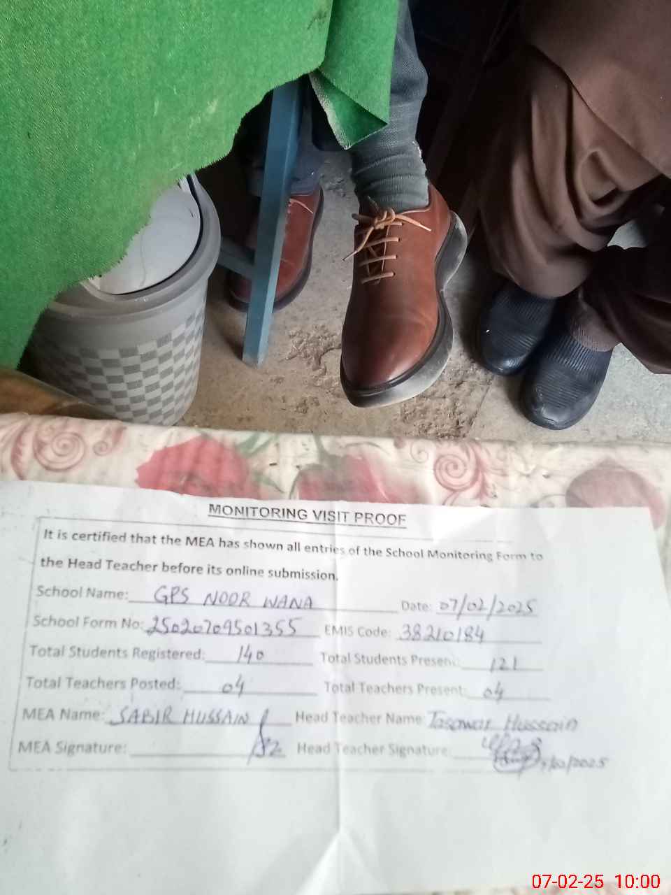 | Attendance Register | Head Teacher | MEA with School | Visit Proof |
