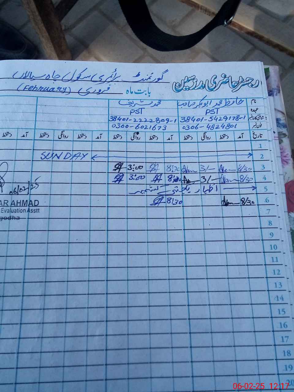 | Name: MAb**** Ba**** Designation: (School Headmaster's/Headmistress's) PST Phone/Cell Number: 03**** |