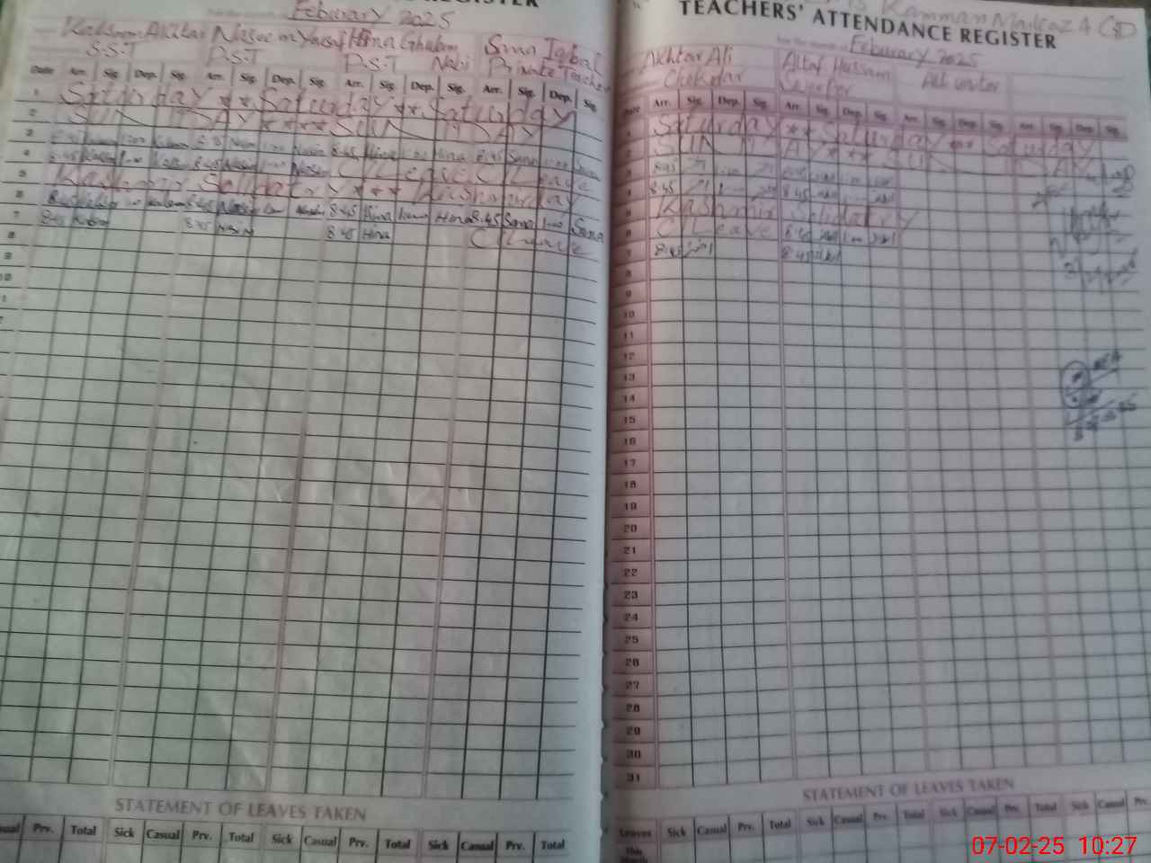 | Leave | Duty | Absent | Maternity | Medical | Ex- Pak |