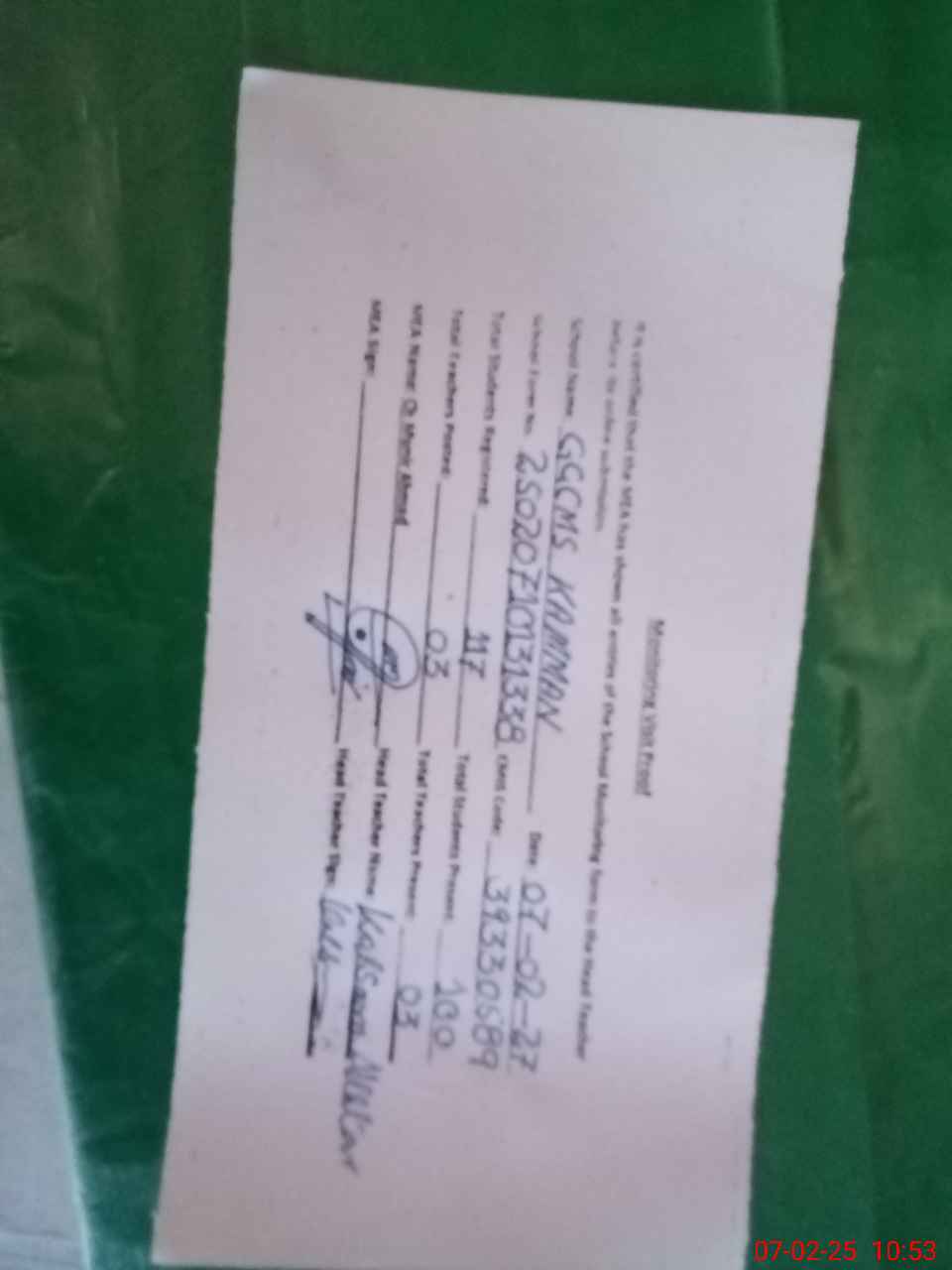 | Monitoring Date: 07-02-2025 | Start Time: 07-02-2025 10:13 AM | End Time: 07-02-2025 10:53 AM | Name of MEA: MU**** AH**** | |