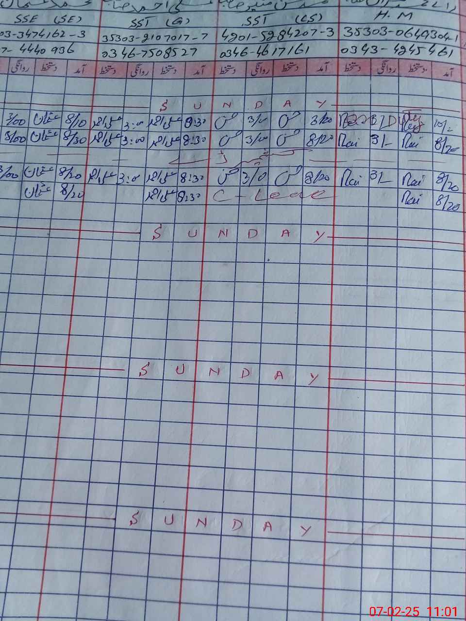| CNIC | Full Name | Designation | R/C | Absence During Last Calender Month |
