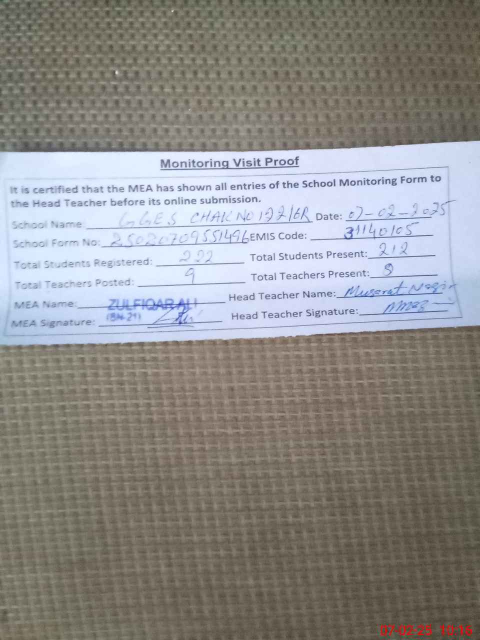 | EMIS Code: 31140105 | Name of School: GGES CHAK 122/6-R | |||