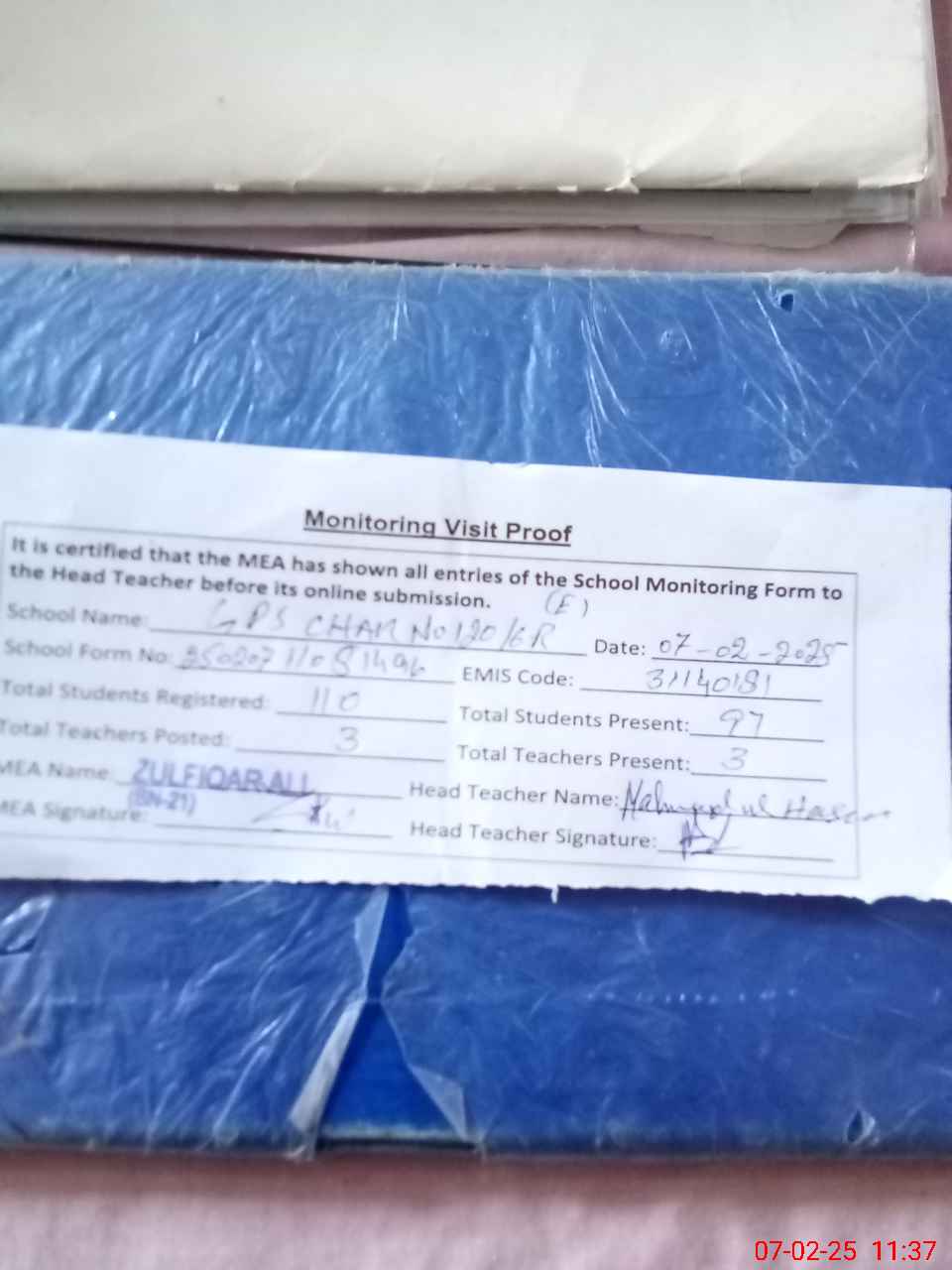 | EMIS Code: 31140181 | Name of School: GPS CHAK NO 120/6-R (E) | |||