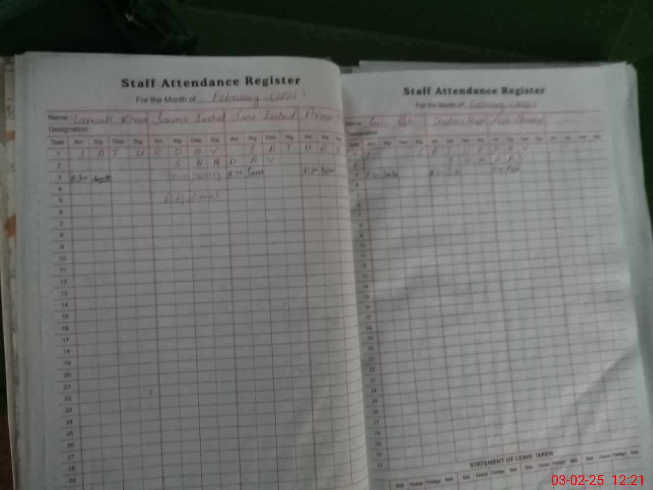 | 32**** | Sa**** Ir**** | 3 | 1 | 0 | 0 | 0 | 0 | 0 | 0 | 0 | 0 | 0 | Absent (Un-Authorized) |