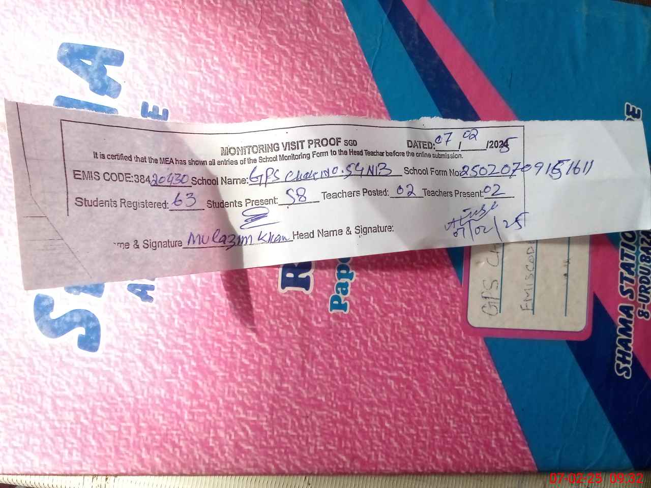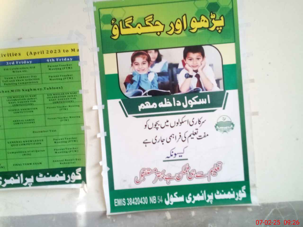 | EMIS Code: 38420430 | Name of School: GPS CHAK NO.54 NB | |||