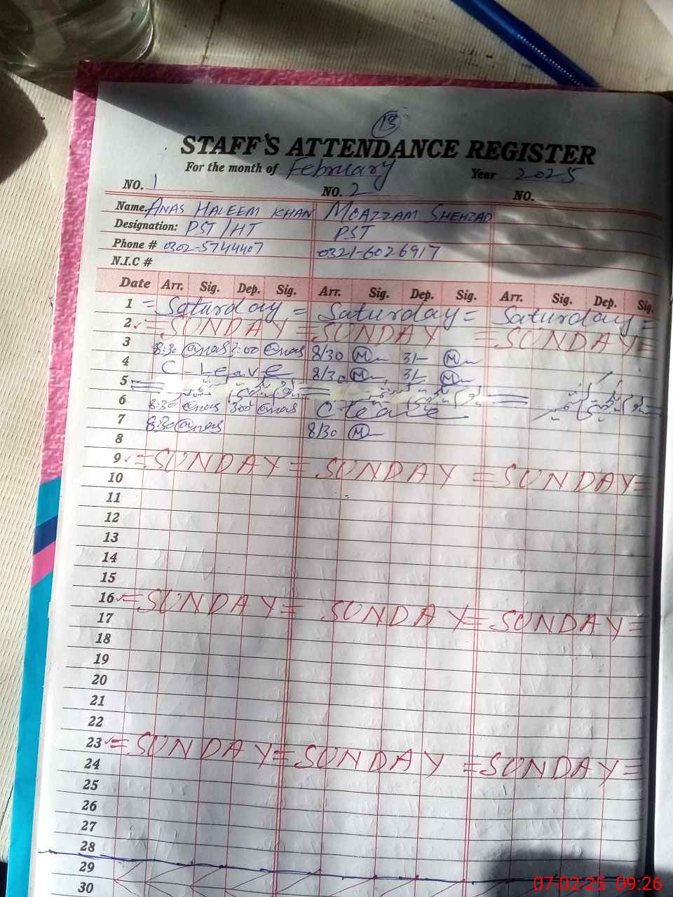 | Name: AN**** HA**** KH**** Designation: (School Headmaster's/Headmistress's) PST Phone/Cell Number: 03**** |