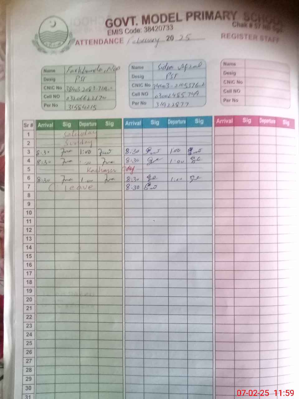 | Name: FA**** NI**** Designation: (School Headmaster's/Headmistress's) PST Phone/Cell Number: 03**** |