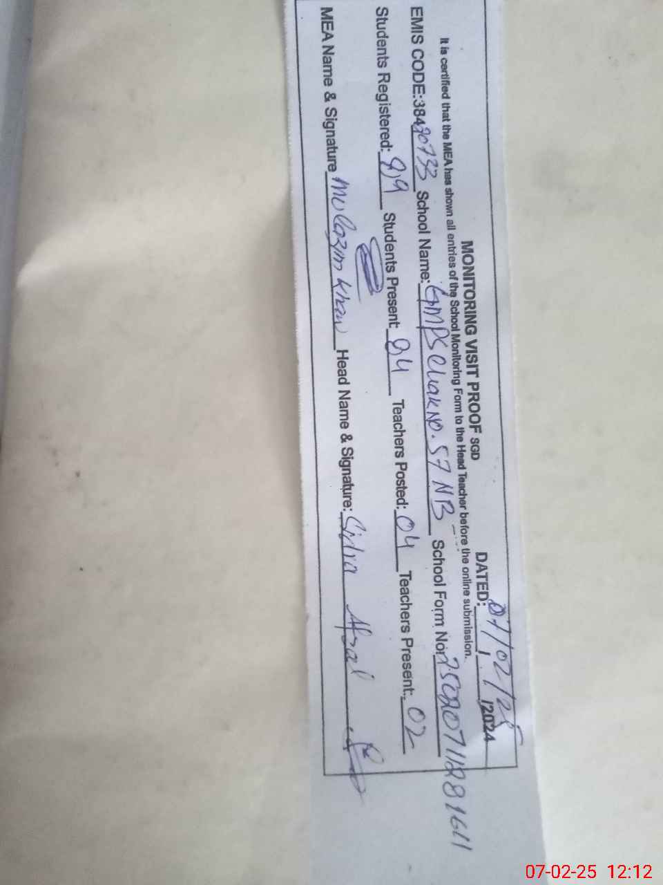 | EMIS Code: 38420733 | Name of School: GMPS CHAK NO.57 NB | |||