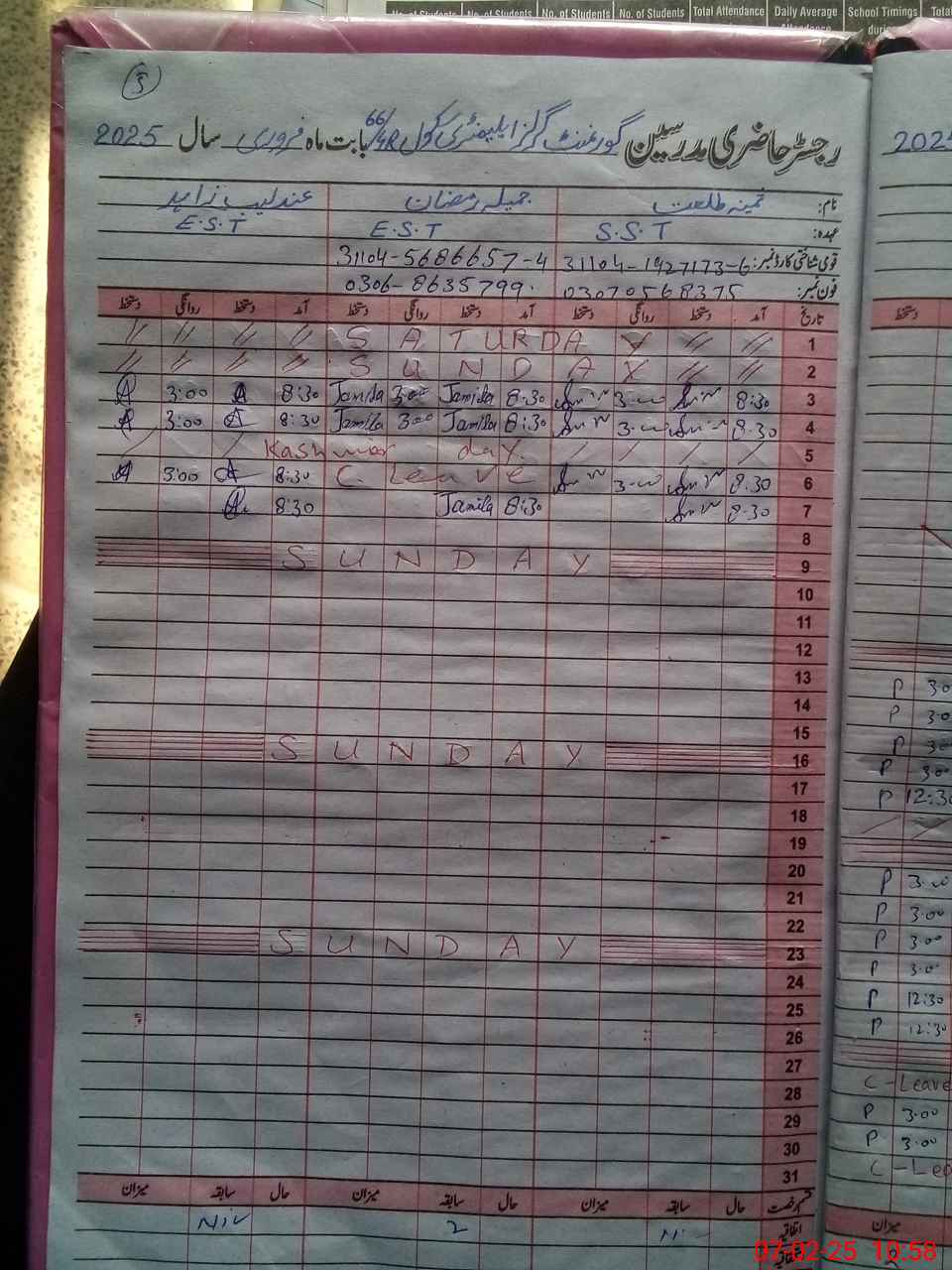 | Name: Sa**** Ta**** Designation: (School Headmaster's/Headmistress's) S.S.T.( GEN Phone/Cell Number: 03**** |