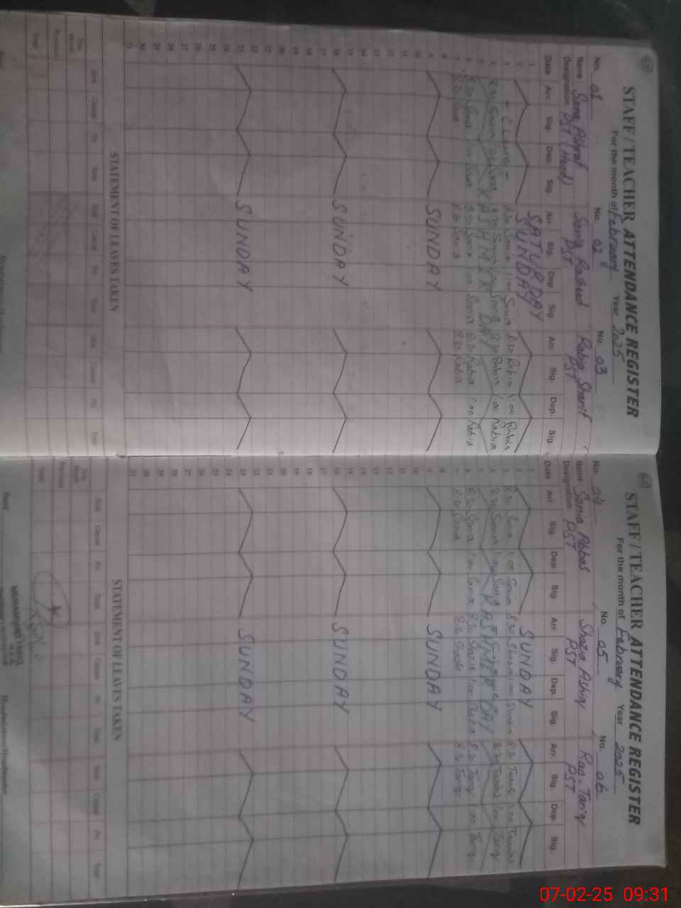 | CNIC | Full Name | Designation | R/C | Absence During Last Calender Month |