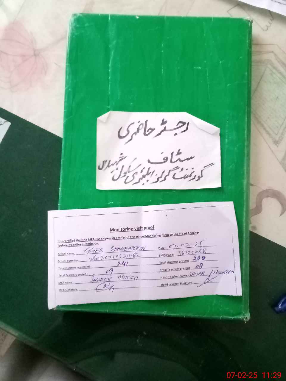 | EMIS Code: 38120068 | Name of School: GGHS SHAHEEDAN | |||