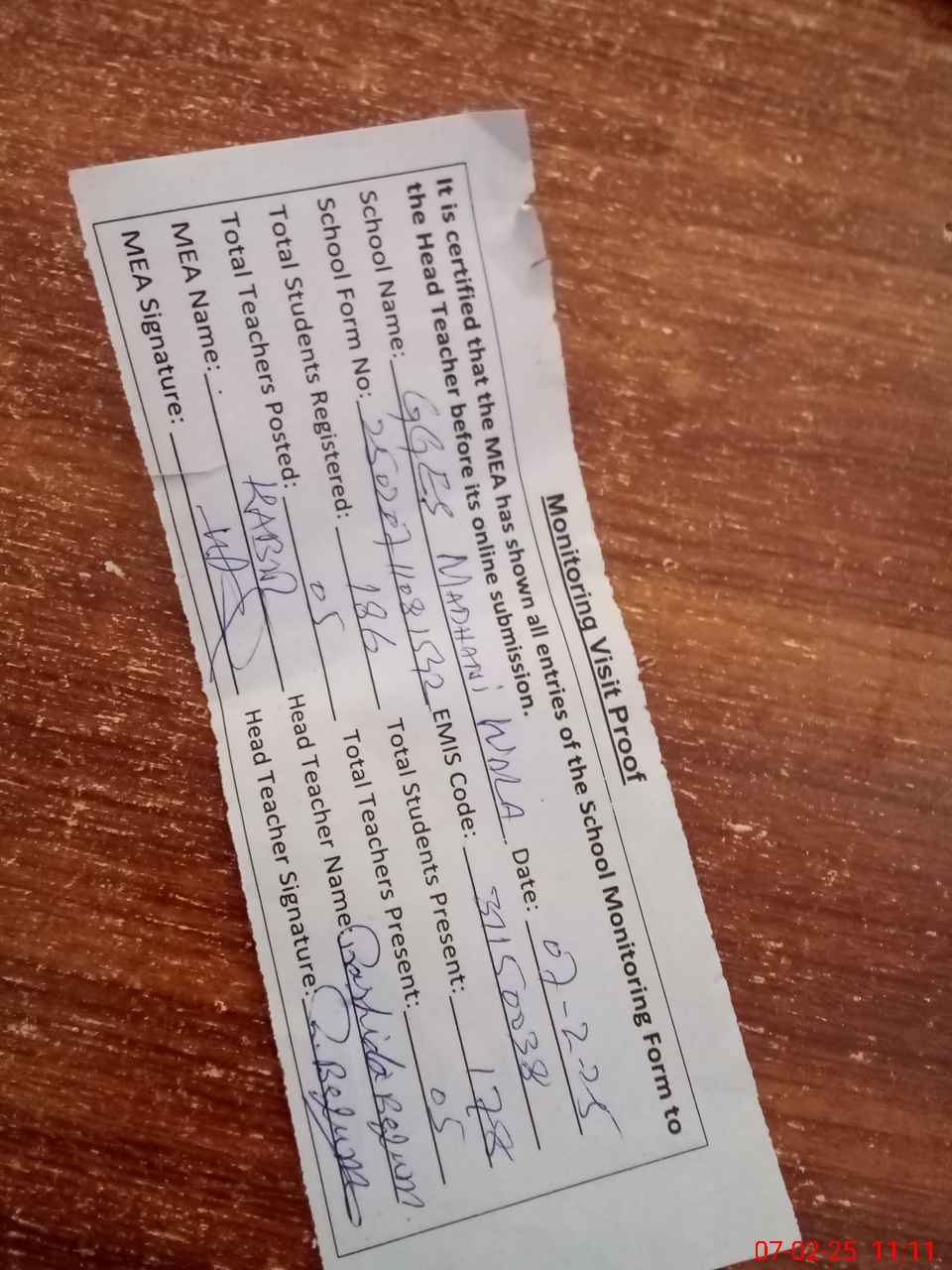 | Certified that this School was Inspected by the Undersigned MEA/DMO Today and the Information Stated Above is as Per Record. | |||||