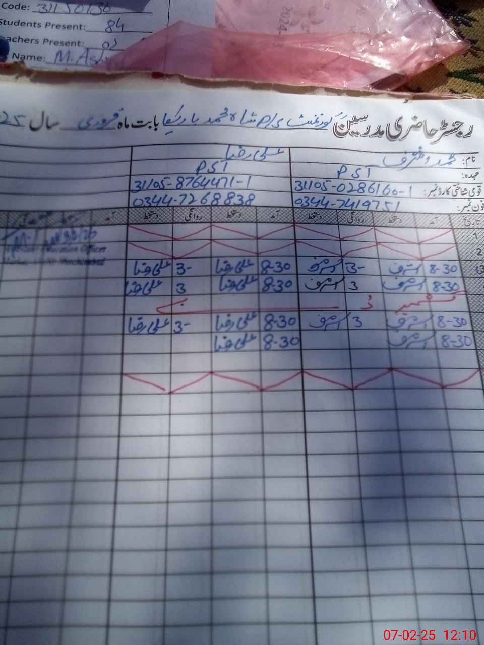 | Name: MU**** AS**** Designation: (School Headmaster's/Headmistress's) PST Phone/Cell Number: 03**** |