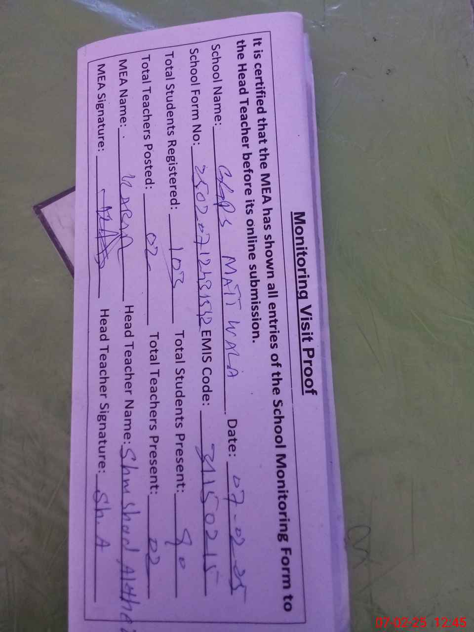 | EMIS Code: 31150215 | Name of School: GGPS MUIT WALA | |||