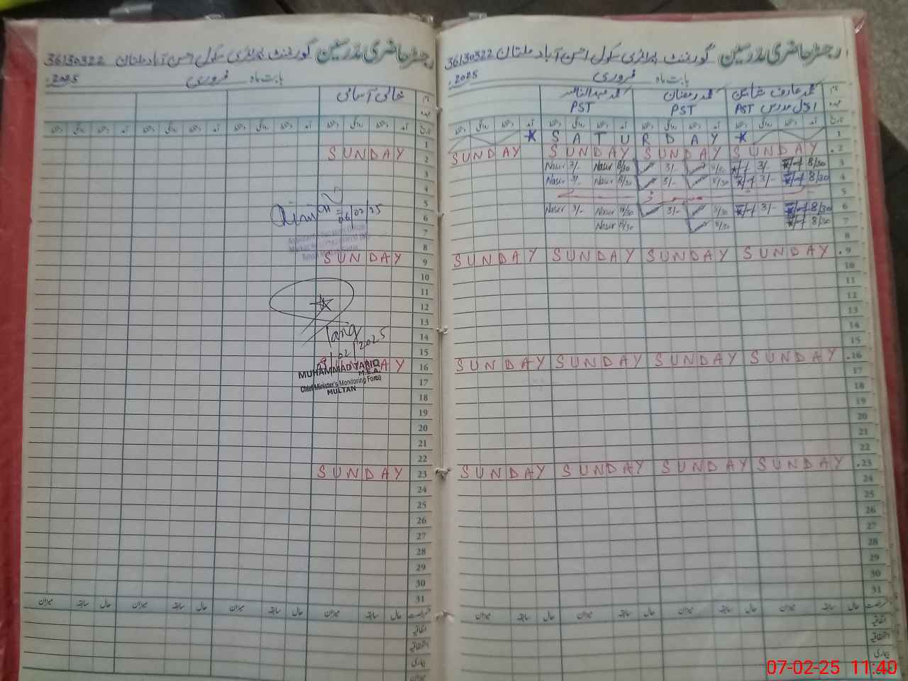 | Remarks (Use Separate Page if Required): STUDENTS ATTENDANCE LIST OF PREVIOUS SESSION PST MUHAMMAD NAZIM HAS EXPIRED BUT NO OFFICIAL DOCUMENTS AVAILABLE IN SCHOOL | |||||