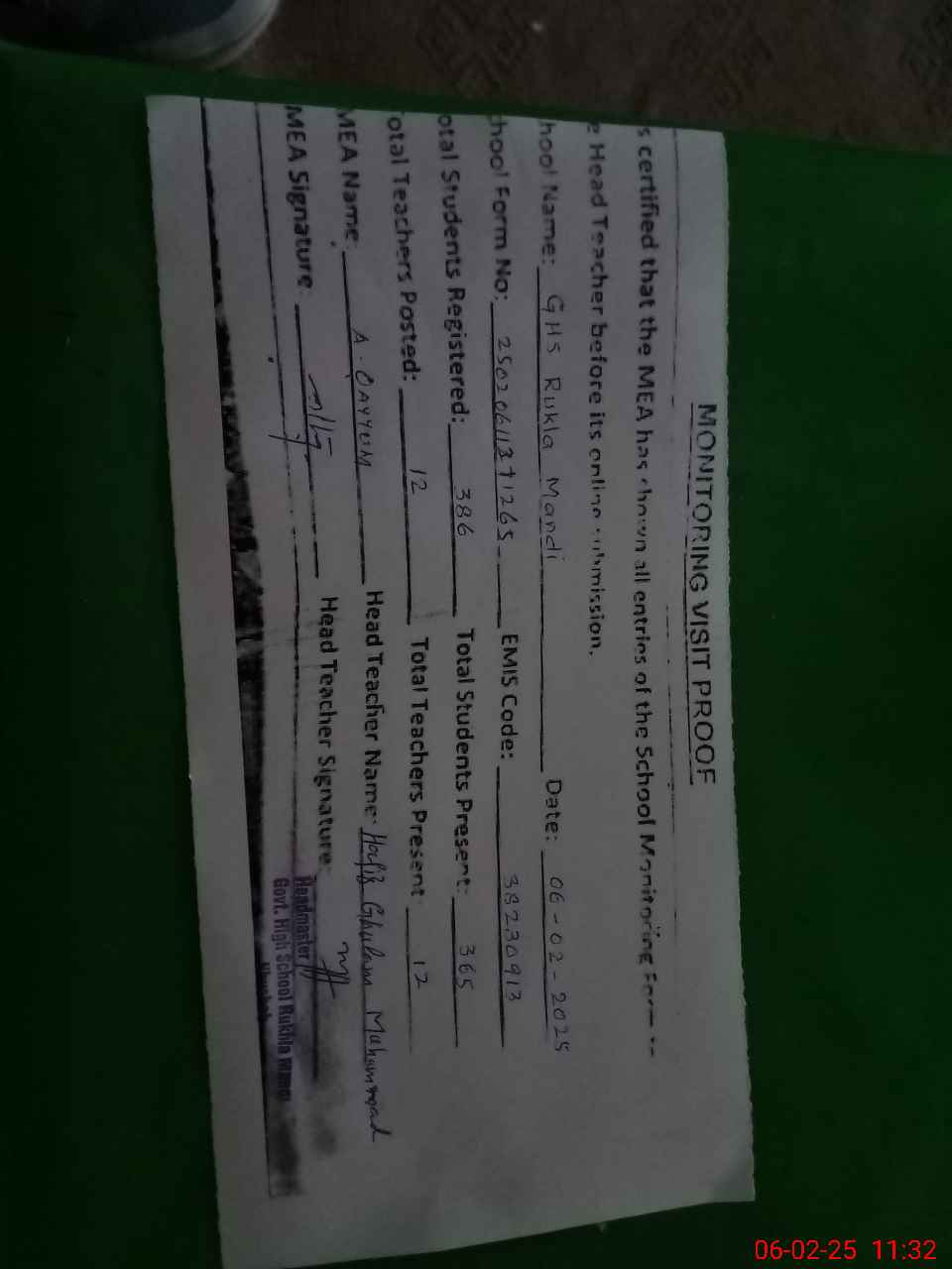 | EMIS Code: 38230913 | Name of School: GHS RUKHLA MANDI | |||