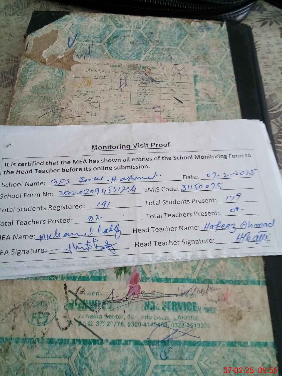 | EMIS Code: 31150075 | Name of School: GPS JORKI HASHMAT | |||