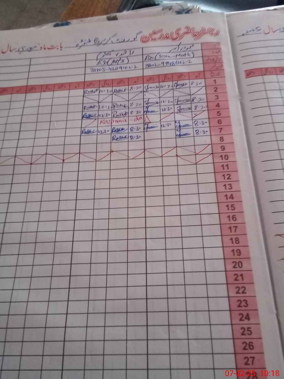 | No. of Students Present - Female | 20 | 0 | 30 | 27 | 17 | 8 | 16 | 13 | 131 | |||||||