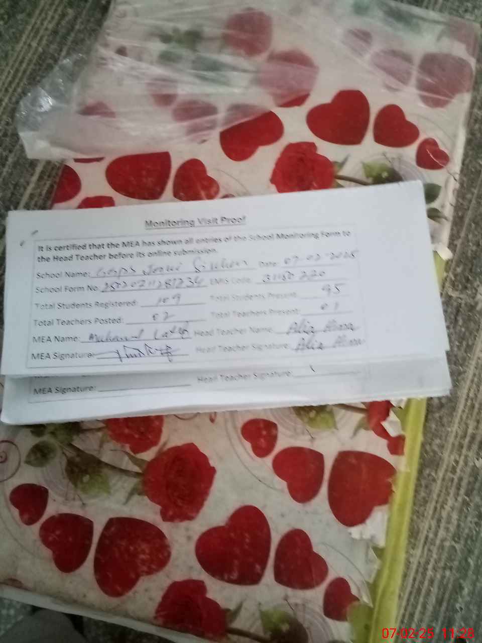 | Attendance Register | Head Teacher | MEA with School | Visit Proof |