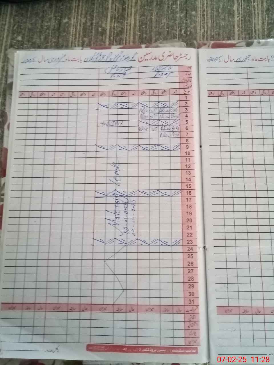 | CNIC | Full Name | Designation | R/C | Absence During Last Calender Month |