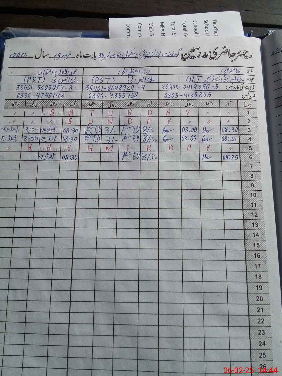 | Name: AS**** AL**** Designation: (School Headmaster's/Headmistress's) ESE Sci Math Phone/Cell Number: 03**** |