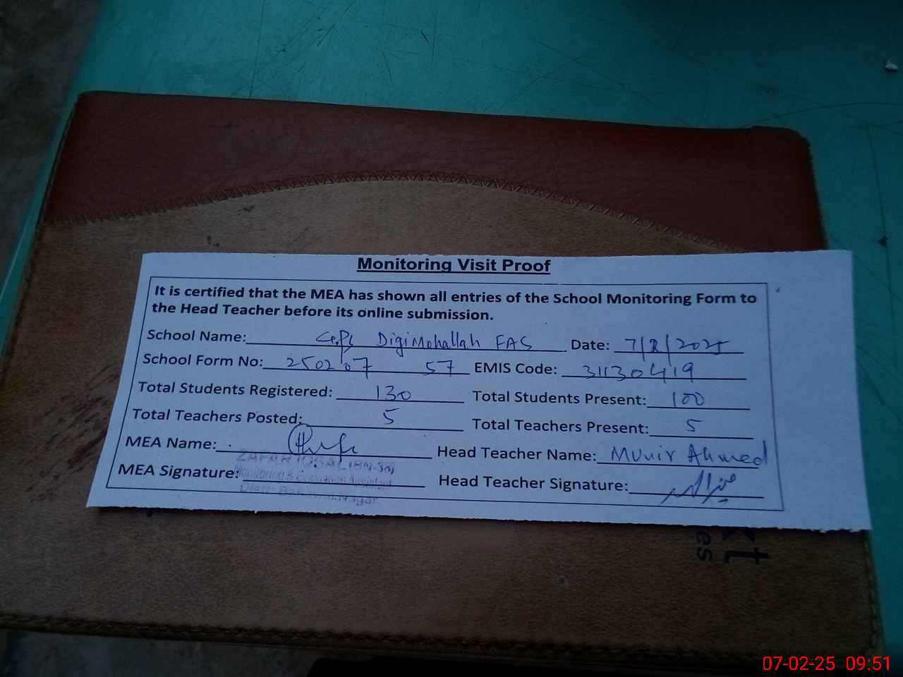 | EMIS Code: 31130419 | Name of School: GPS DIGI MOHALAH FORT ABBAS | |||