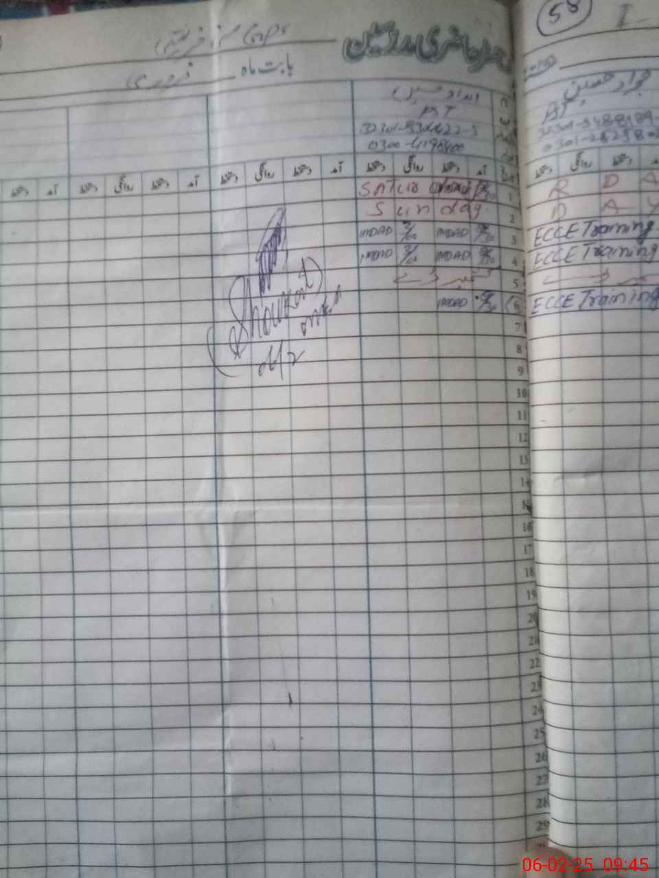 | CNIC | Full Name | Designation | R/C | Absence During Last Calender Month |
