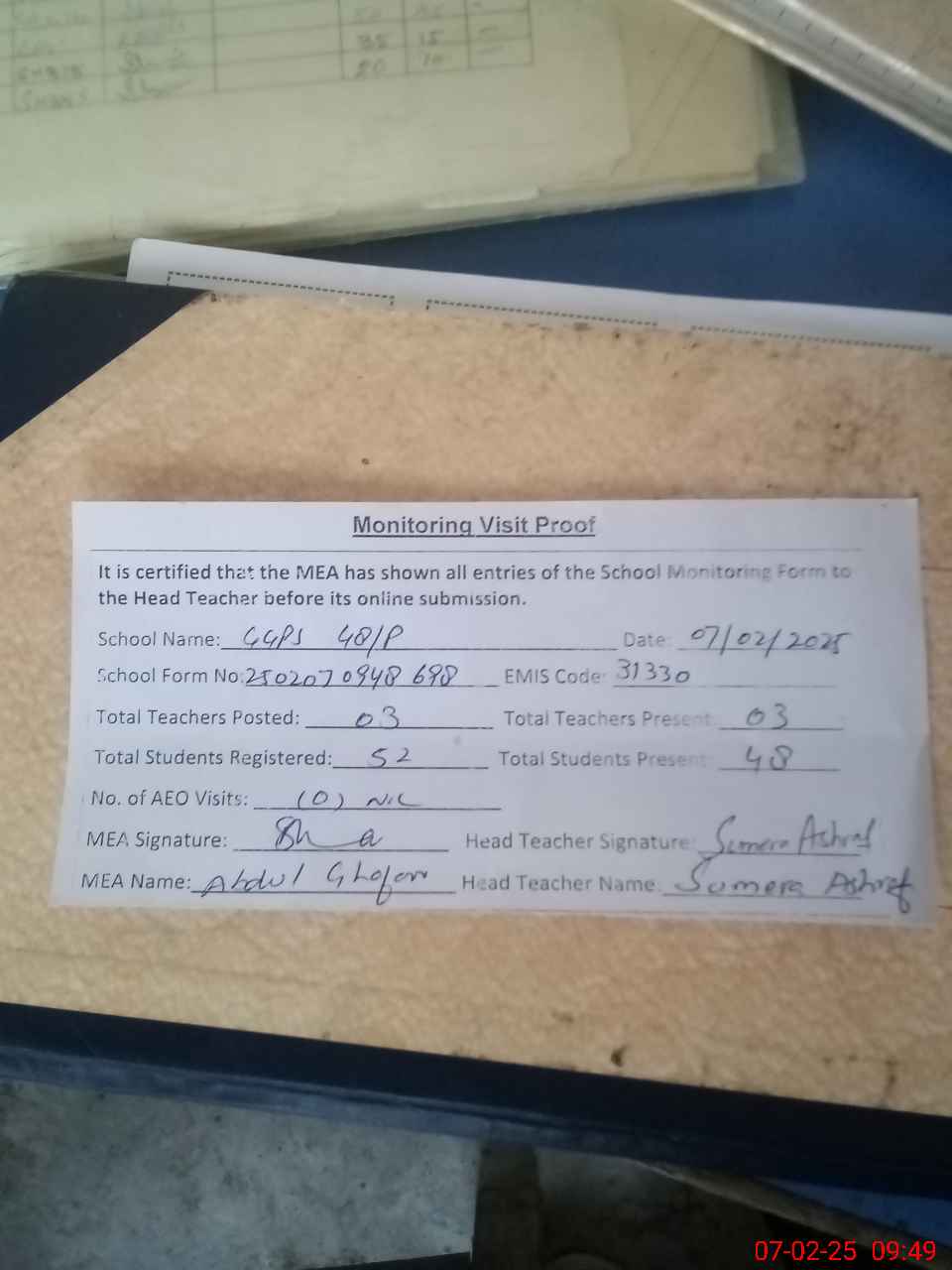 | EMIS Code: 31330547 | Name of School: GGPS CHAK 48/P | |||