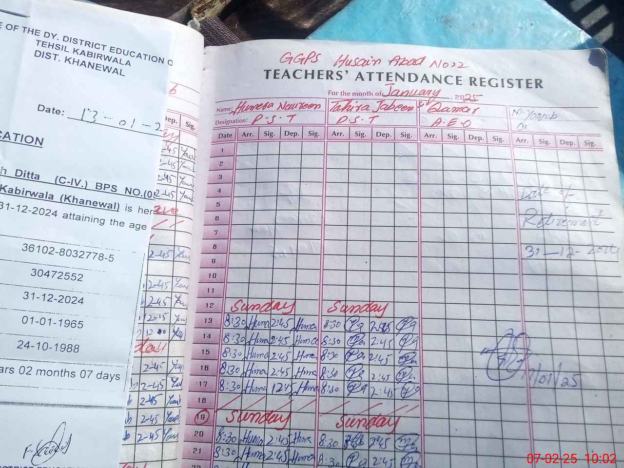 | Name: HU**** NO**** Designation: (School Headmaster's/Headmistress's) PST Phone/Cell Number: 03**** |