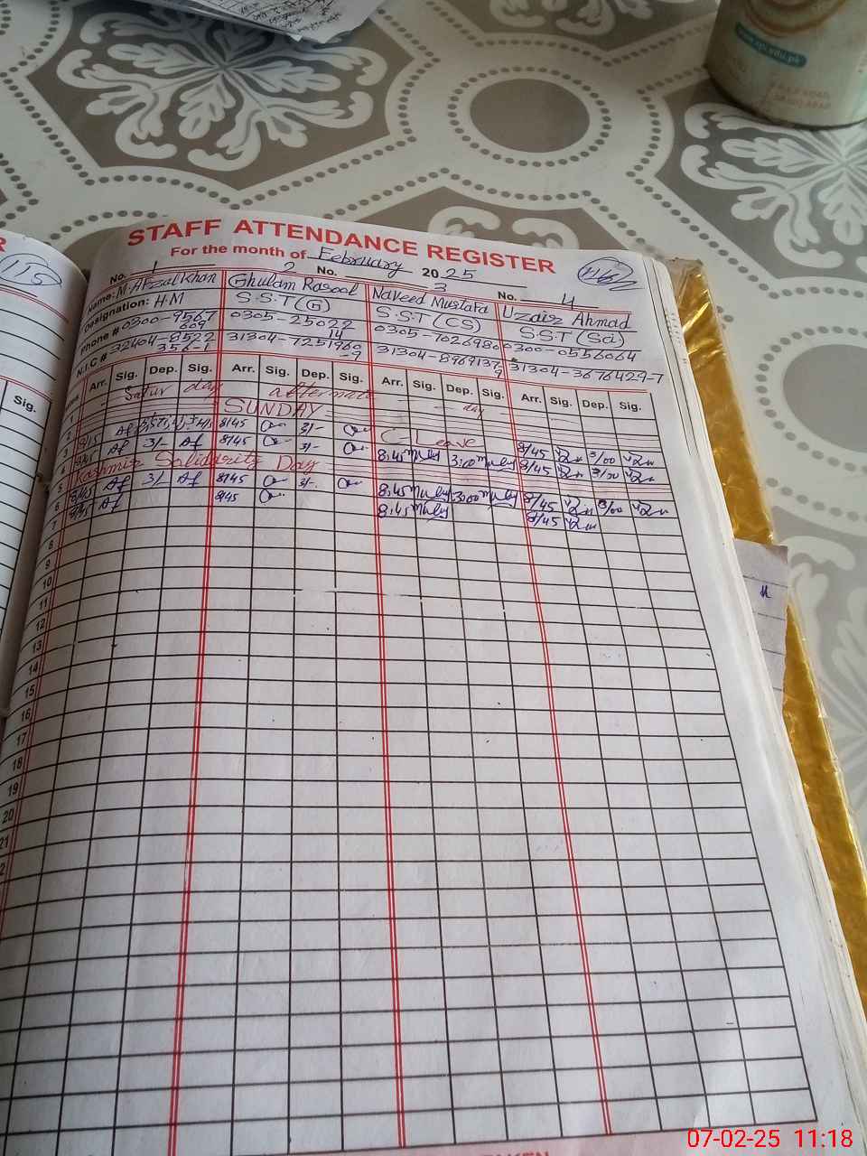 | Name: MAF**** Designation: (School Headmaster's/Headmistress's) Head Master Phone/Cell Number: 03**** |