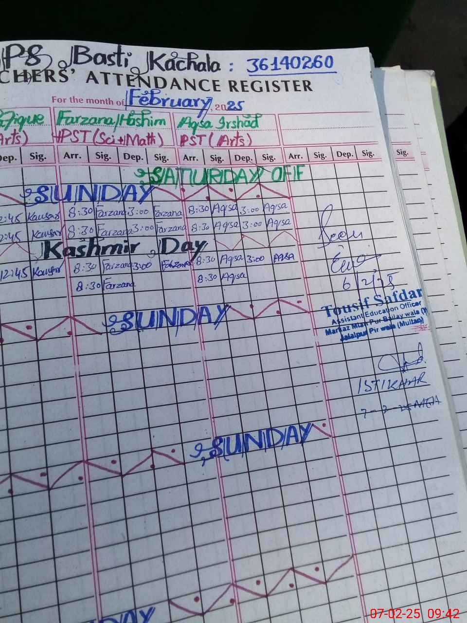 | District: MULTAN | Tehsil: JALALPUR PIRWALA | Markaz: KHAN BELA - FEMALE | Level: Primary | |