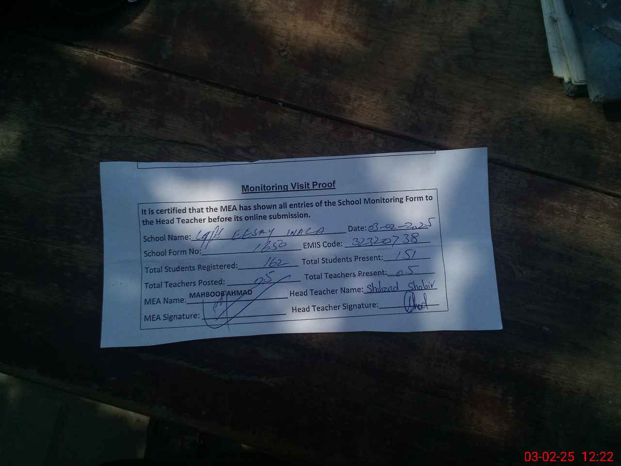 | EMIS Code: 32320738 | Name of School: GPS EESAY WALA | |||
