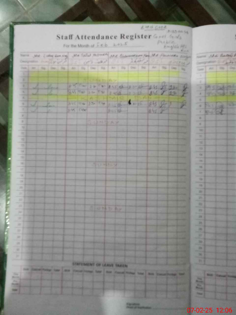| CNIC | Full Name | Designation | R/C | Absence During Last Calender Month |