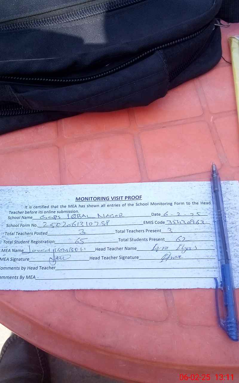 | EMIS Code: 35430963 | Name of School: GGPS IQBAL NAGAR | |||