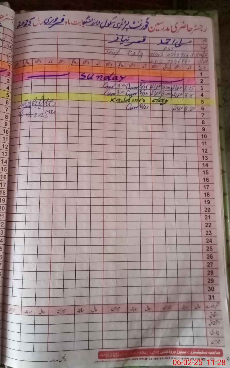 | Name: Al**** Ah**** Designation: (School Headmaster's/Headmistress's) PST Phone/Cell Number: 03**** |