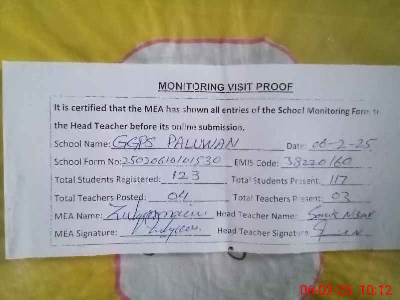 | Attendance Register | Head Teacher | MEA with School | Visit Proof |