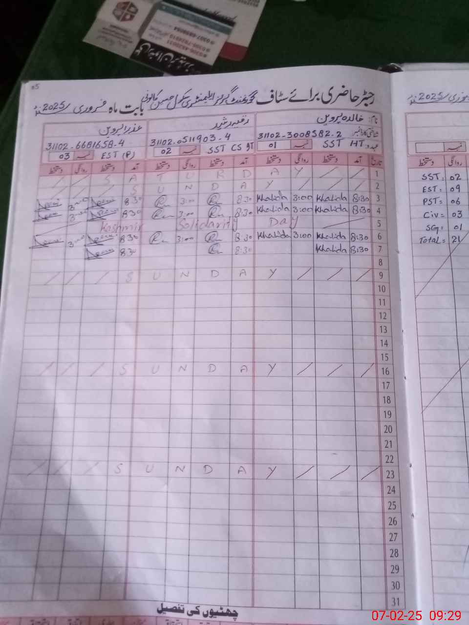 | 31**** | Ay**** Fa**** | PST | Regular | 0 | 0 | 0 | 0 | 0 | 0 | 0 | 0 | 0 | Absent (Un-Authorized) |