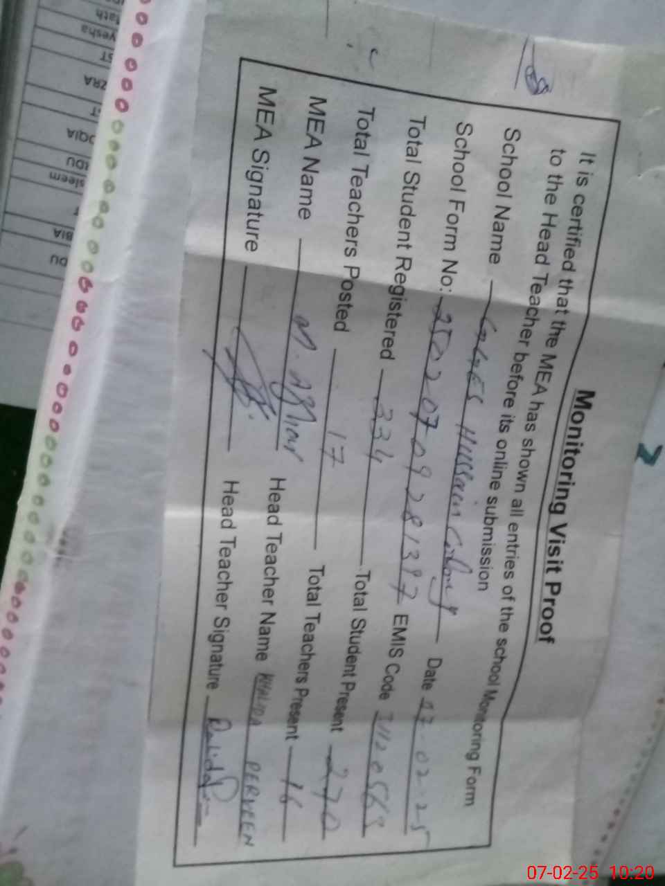 | EMIS Code: 31120563 | Name of School: GGES HUSSAIN COLONY | |||