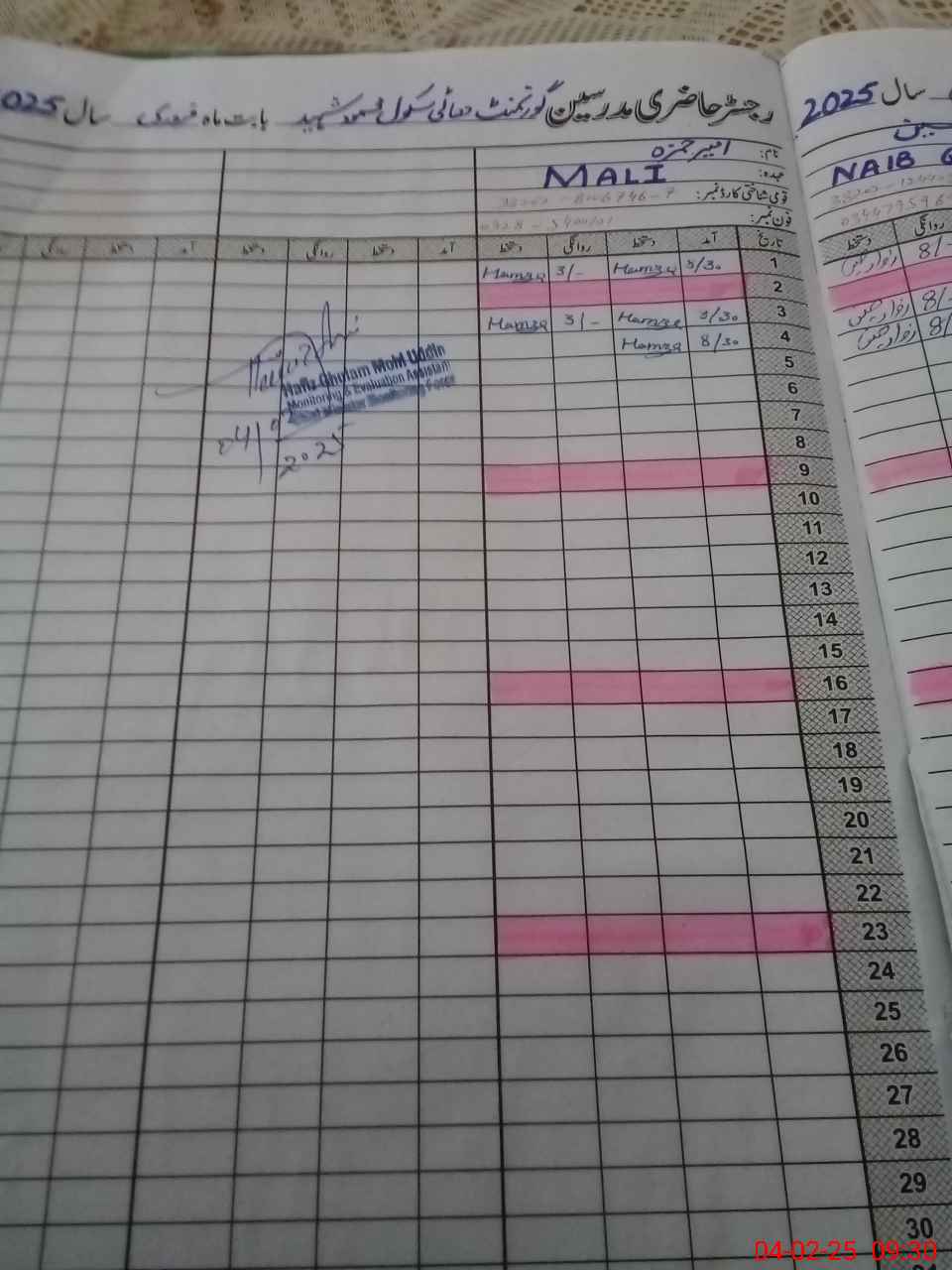 | Name: Wa**** Ab**** Ma**** Designation: (School Headmaster's/Headmistress's) SST Sci Phone/Cell Number: 03**** |