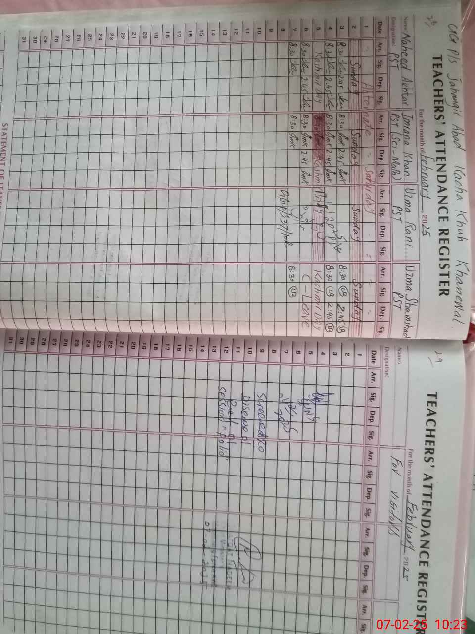 | CNIC | Full Name | Designation | R/C | Absence During Last Calender Month |