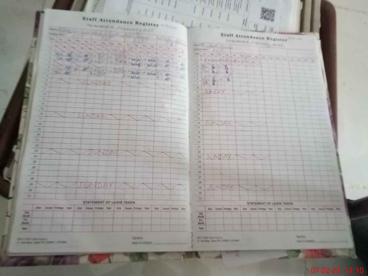 | CNIC | Full Name | Designation | R/C | Absence During Last Calender Month |