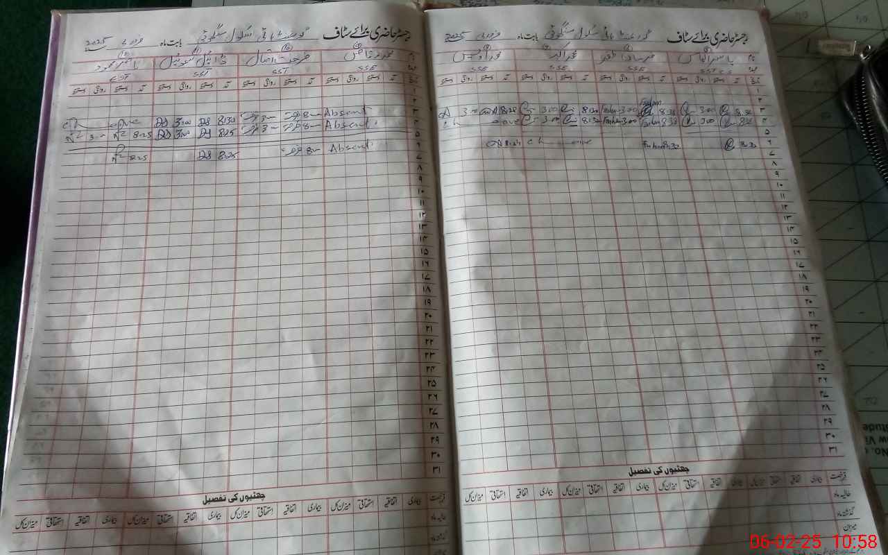 | CNIC | Full Name | Designation | R/C | Absence During Last Calender Month |