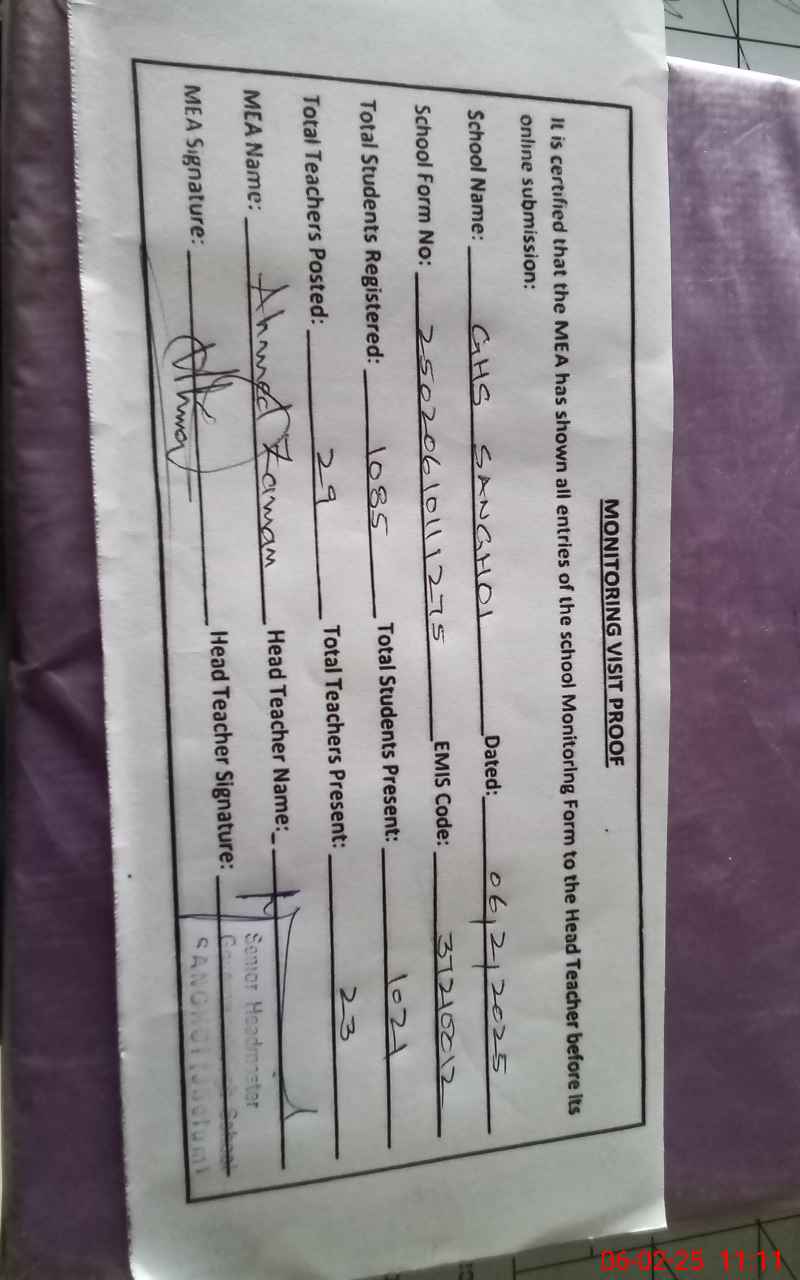 | EMIS Code: 37210012 | Name of School: GHS SANGHOI | |||