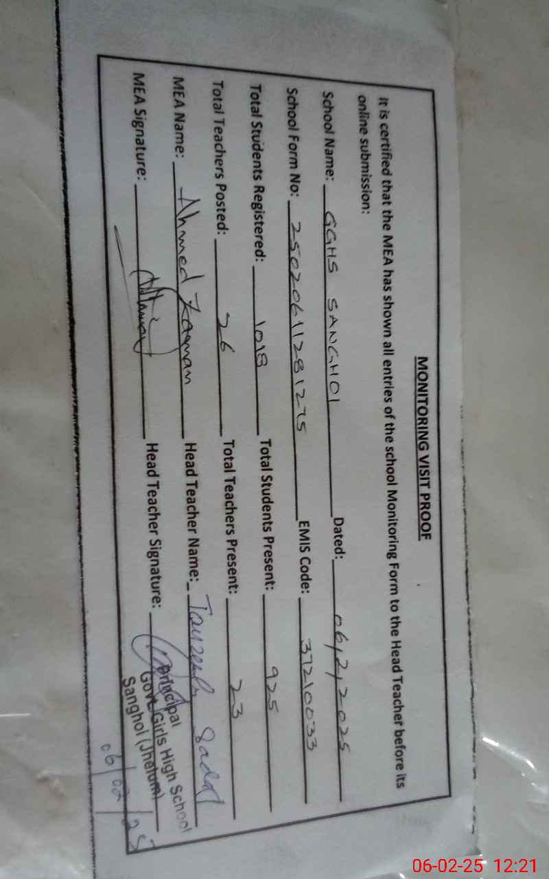 | EMIS Code: 37210033 | Name of School: GGHS SANGHOI | |||