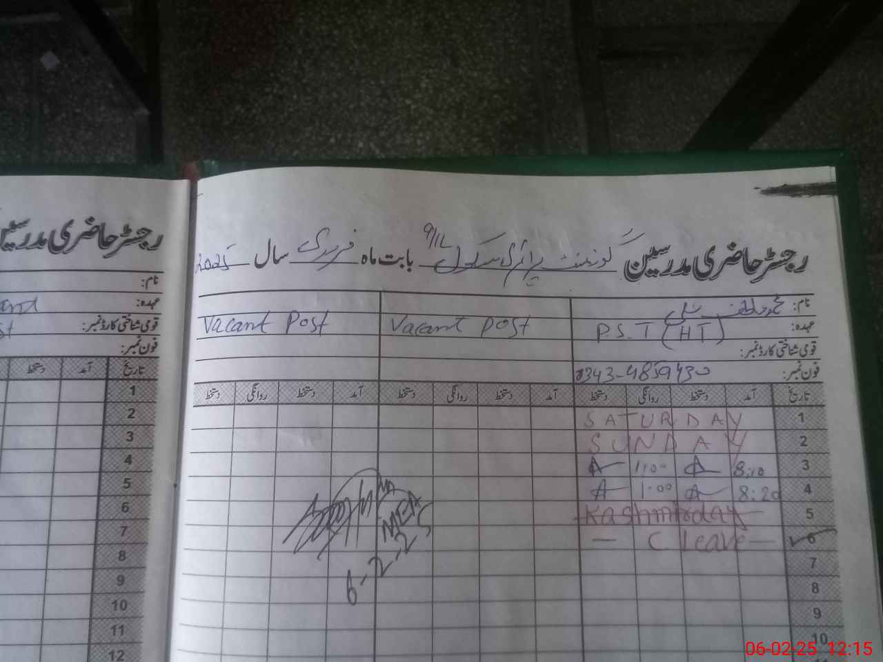| Name: AS**** HU**** Designation: (School Headmaster's/Headmistress's) PST Phone/Cell Number: 03**** |