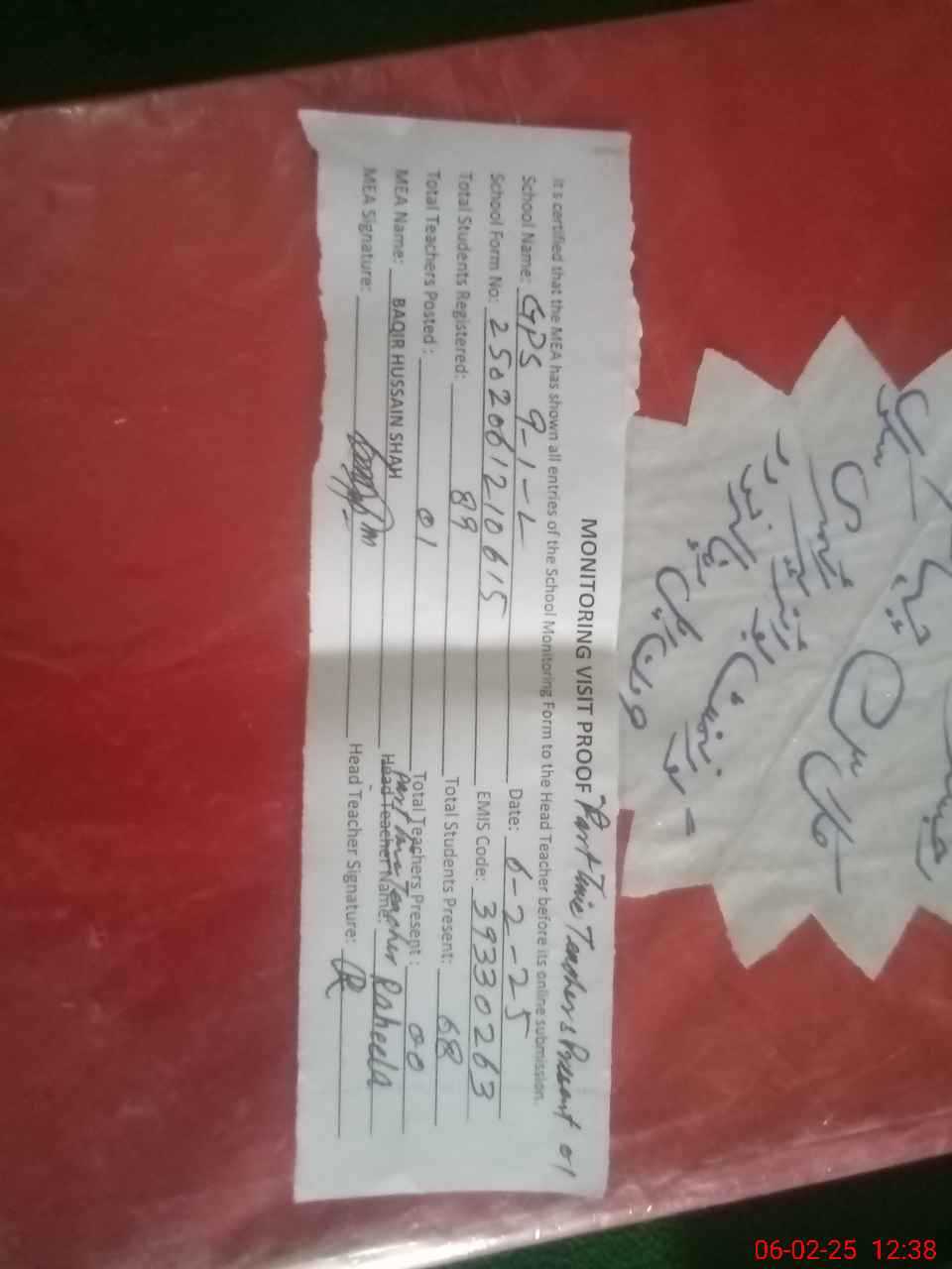 | EMIS Code: 39330263 | Name of School: GPS CHAK 9/I.L | |||