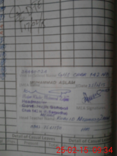 | EMIS Code: 38440024 | Name of School: GHS CHAK NO.142 NB | |||