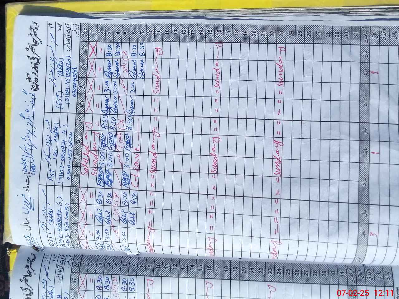 | CNIC | Full Name | Designation | R/C | Absence During Last Calender Month |