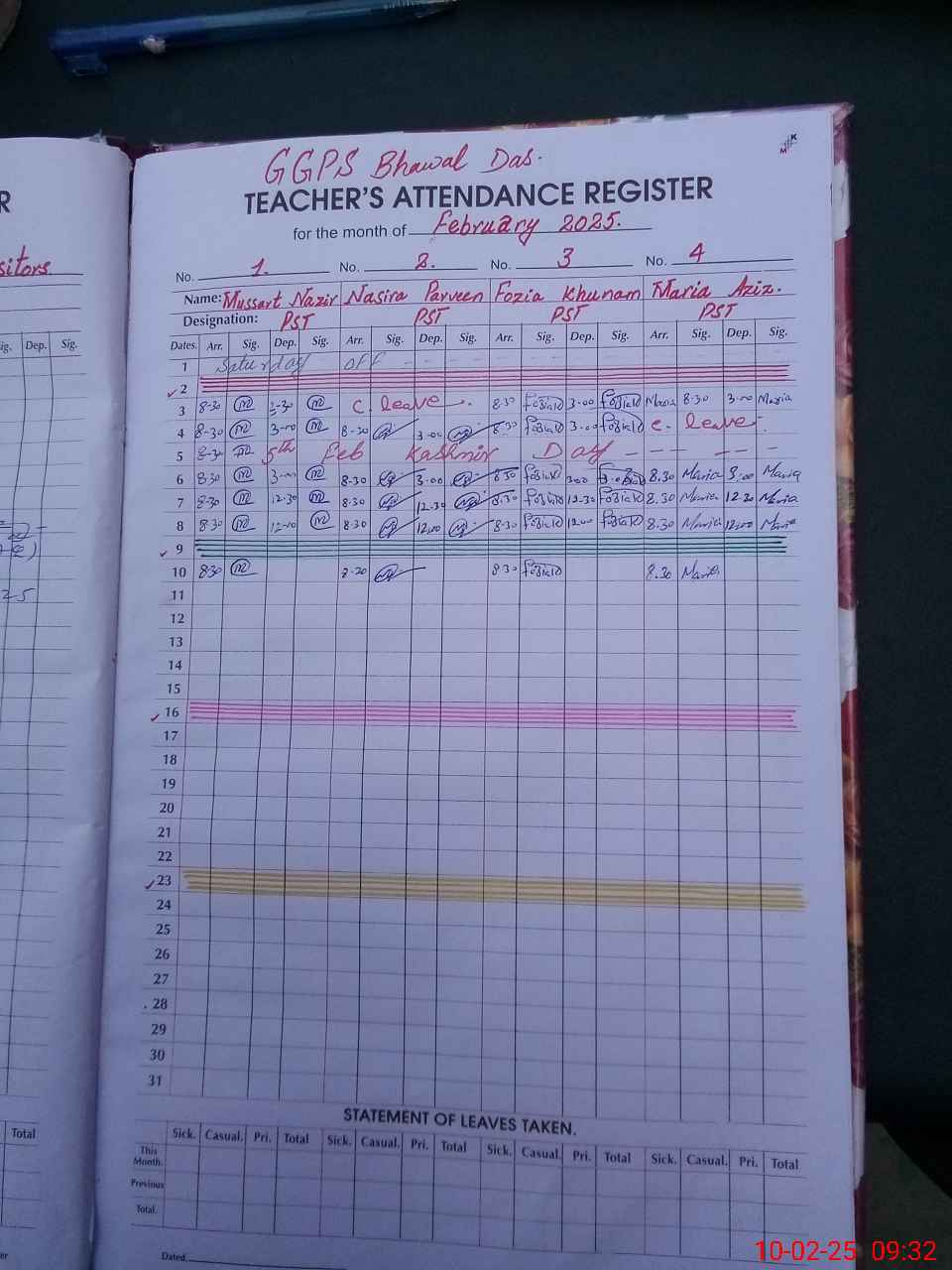 | Leave | Duty | Absent | Maternity | Medical | Ex- Pak |